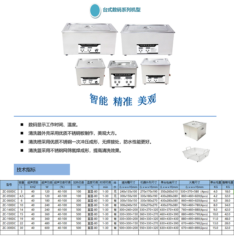 B、清洗温度在室温-80℃范围内任意可调,数码显示工作温度。