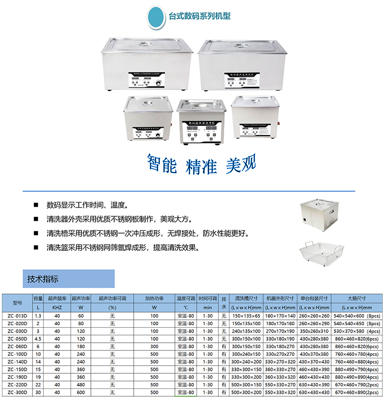 ZC-100D超声波清洗机是一款功能精良的清洗设备,适用于多种场合的清洗需求。其采用先进的超声波清洗技术,结合优质的材料和精湛的工艺,确保了清洗效果的高效与稳定。