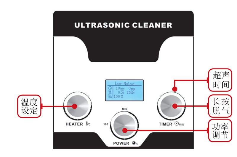 4、超声波功率10%-100%无级可调,为不同清洗匹配适合力度。