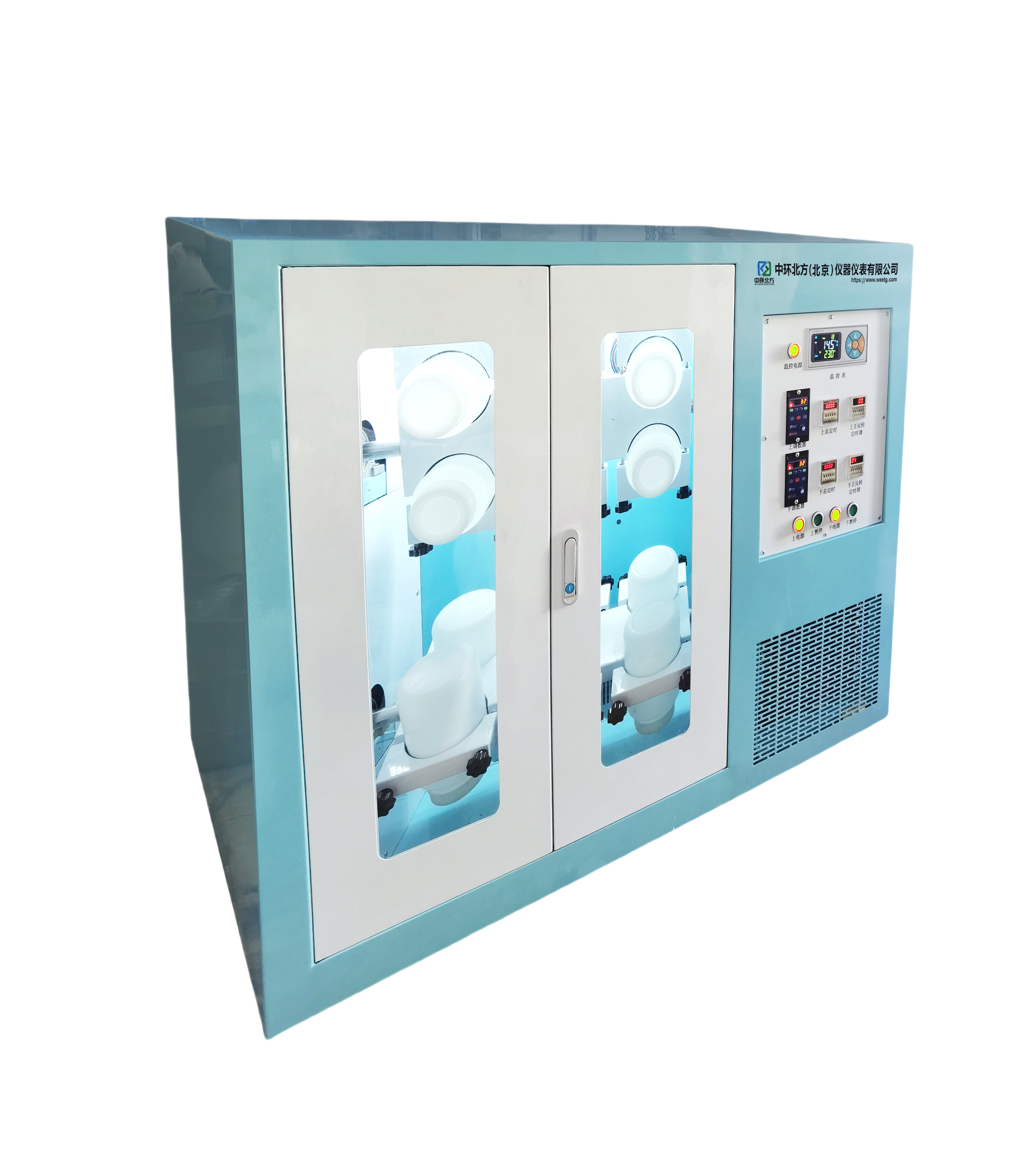 13、仪器采用立式,双开门的结构,底部装有滑动轮,可以实现轻松移动。